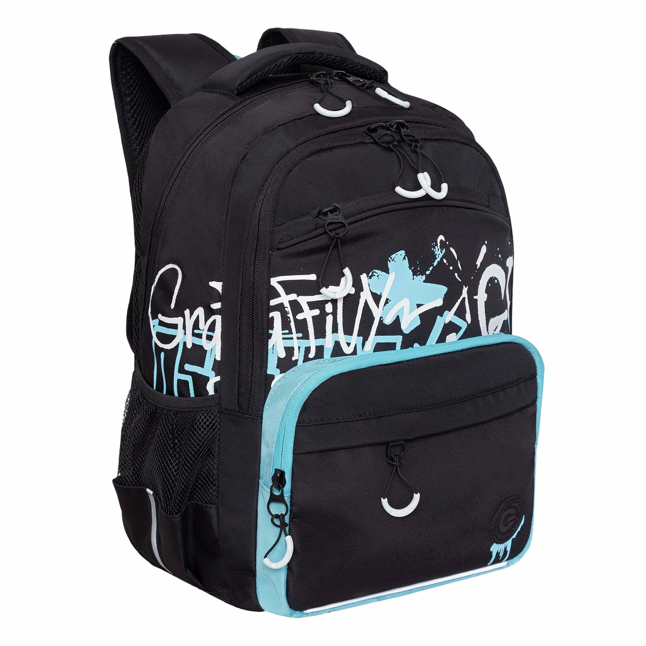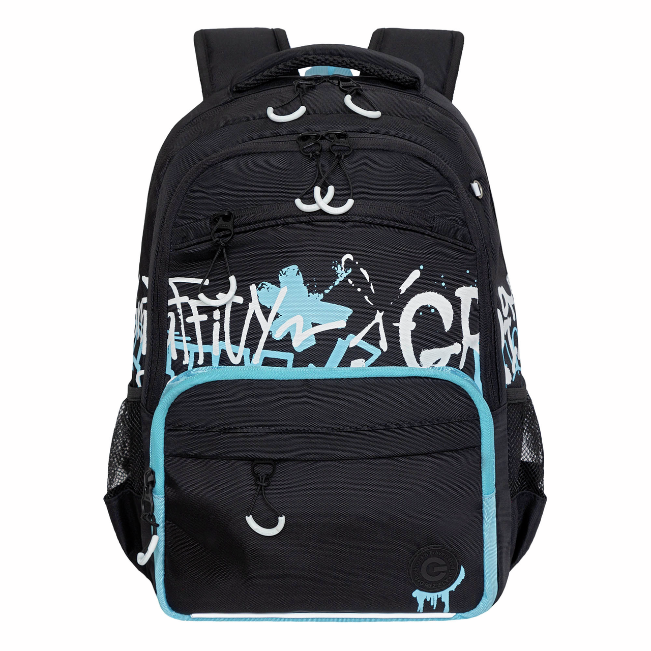 Рюкзак Grizzly RB-354 школьный черный-голубой