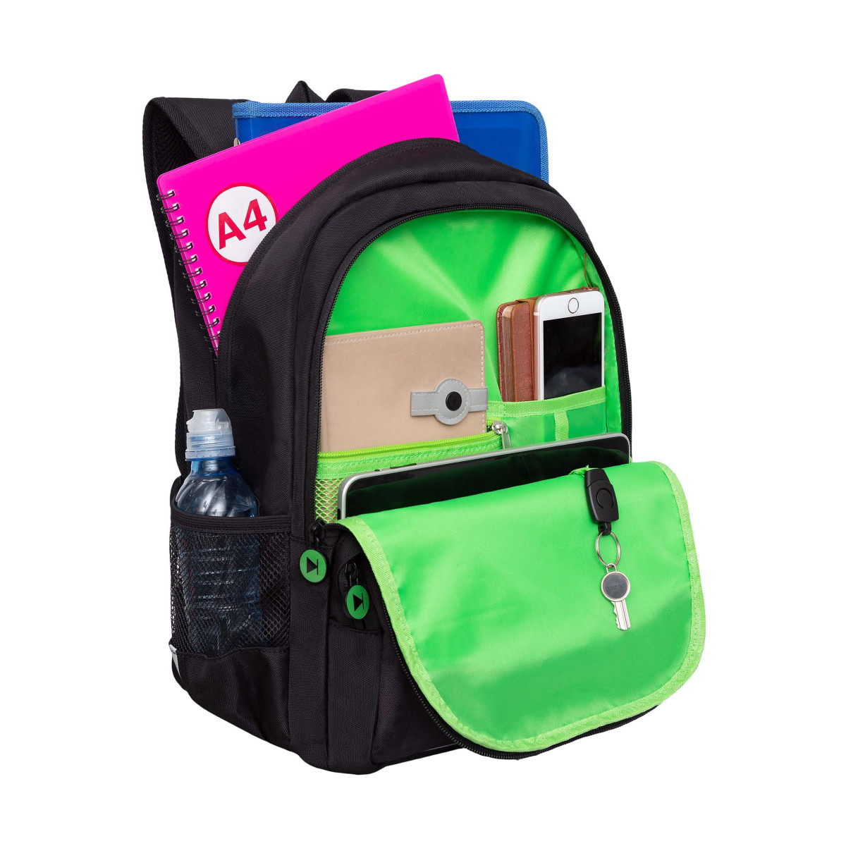 Рюкзак Grizzly RB-354 школьный черный - подростку приходится носить с собой в школу столько вещей, что не каждый взрослый потянет? Анатомический рюкзак помогает сохранить здоровую спину. Эта модель с твердым дном выполнена из прочного плотного полиэстера и рассчитана на рост от 125 до 140 см. Как бы подросток не разложил вещи внутри, рюкзак отлично держит форму и не перекашивается. Накладки анатомической спинки поддерживают позвоночник в правильном положении — равномернее распределяется вес. Рюкзак вместительный — внутри помещается все, что может понадобиться в школе. Есть два больших отделения: одно для книг, документов и пособий формата А4, другое для принадлежностей. Много карманов внутри и снаружи, карман для ноутбука 13". Со всех сторон есть отражатели — ребенка в темноте точно заметят. А за счет водо- и грязеотталкивающей пропитки рюкзак долго остается как новый. Если он все же чем-то испачкался, мы рекомендуем ручную стирку в холодной воде