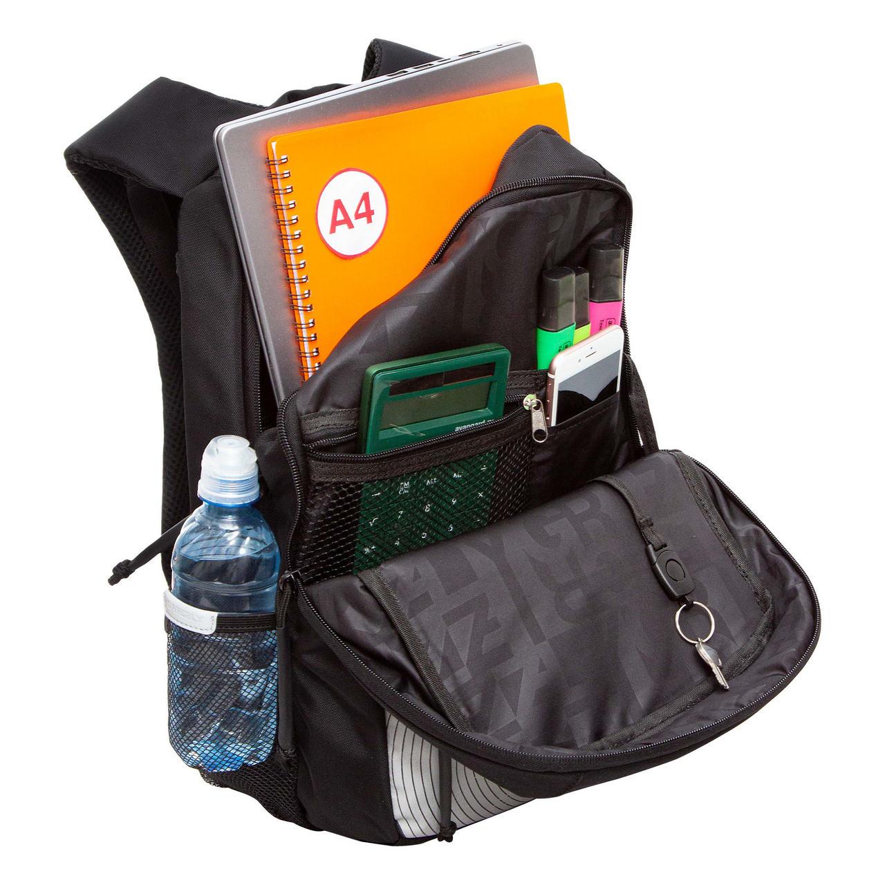 Рюкзак Grizzly RB-356 черный - анатомический рюкзак разработанный для школьников ростом от 125 до 140 см, помогает сохранить здоровую спину. Эта модель с твердым дном выполнена из прочного плотного полиэстера, поэтому рюкзак отлично держит форму и не перекашивается. Накладки анатомической спинки и нагрудная стяжка со свистком поддерживают позвоночник в правильном положении — равномернее распределяется вес. Рюкзак вместительный — внутри помещается все, что может понадобиться в школе. Есть два больших отделения: одно для книг, документов и пособий формата А4, другое для принадлежностей. Много карманов внутри и снаружи, карман для ноутбука 13". Со всех сторон есть отражатели — ребенка в темноте точно заметят. А за счет водо- и грязеотталкивающей пропитки рюкзак долго остается как новый. Если он все же чем-то испачкался, мы рекомендуем ручную стирку в холодной воде. Если вам нужен вместительный и практичный рюкзак для школьника, добавляйте эту модель в корзину.