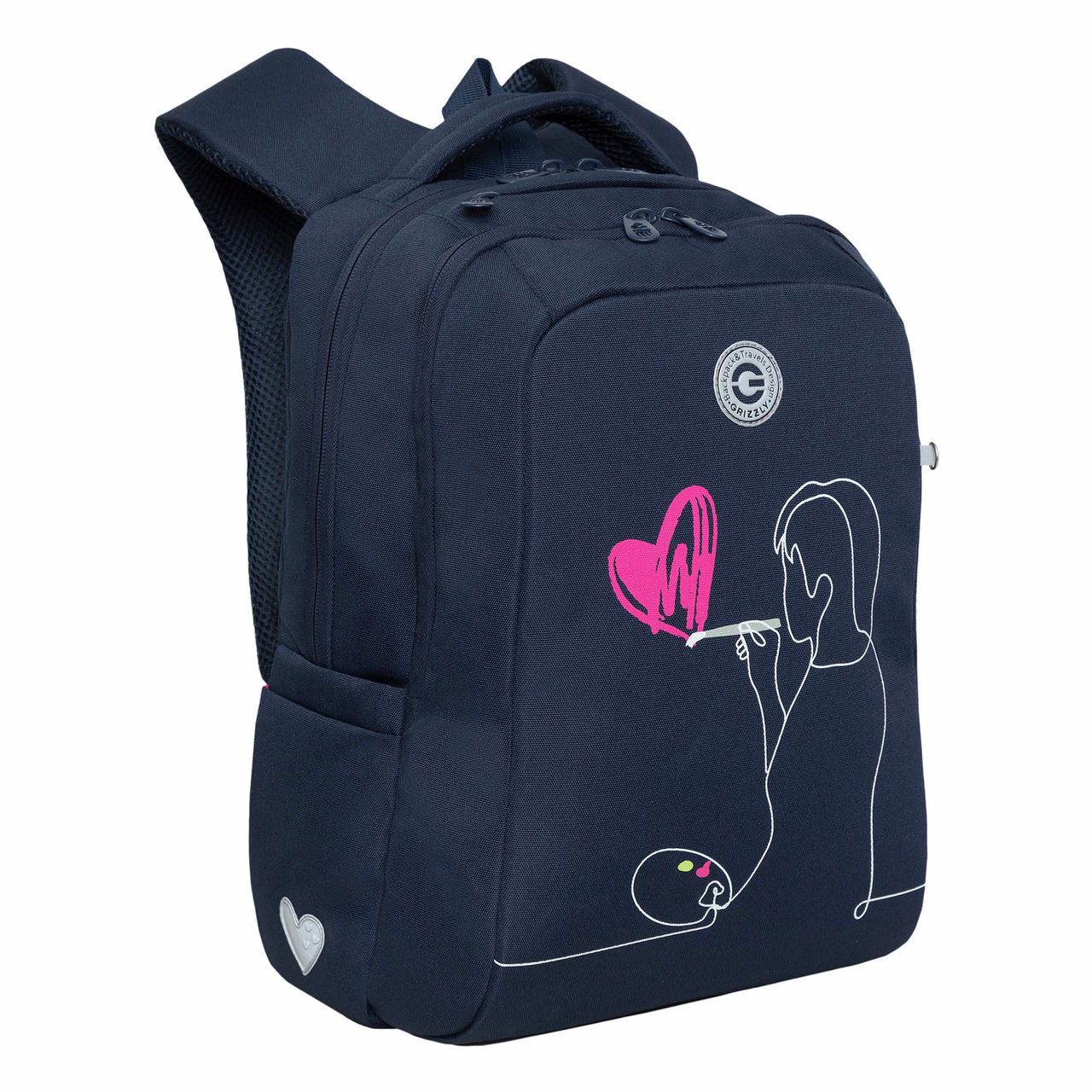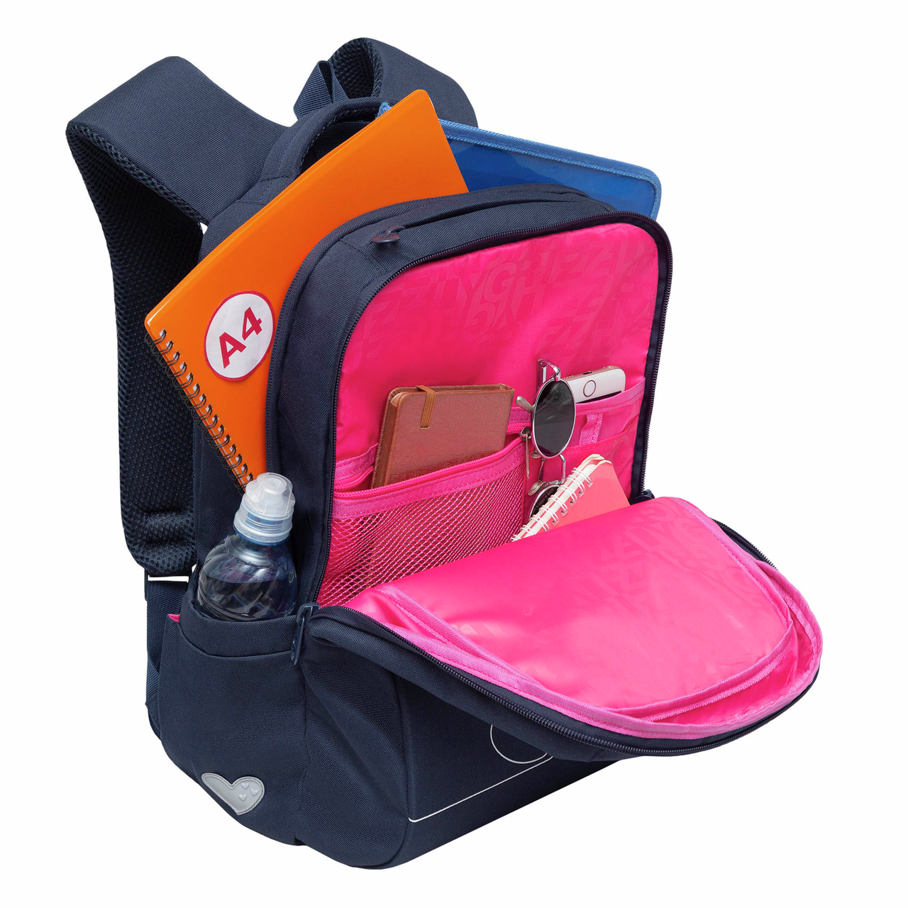 Рюкзак Grizzly RG-366 школьный синий - анатомический рюкзак, разработанный для школьников ростом от 125 до 140 см, помогает сохранить здоровую спину. Эта модель с твердым дном выполнена из прочного плотного полиэстера, поэтому рюкзак отлично держит форму и не перекашивается. Накладки анатомической спинки поддерживают позвоночник в правильном положении — равномернее распределяется вес. Рюкзак вместительный — внутри помещается все, что может понадобиться в школе. Есть два больших отделения: одно для книг, документов и пособий формата А4, другое для принадлежностей. Много карманов внутри и снаружи, карман для ноутбука 13". Со всех сторон есть отражатели — ребенка в темноте точно заметят. А за счет водо- и грязеотталкивающей пропитки рюкзак долго остается как нов��й. Если он все же чем-то испачкался, мы рекомендуем ручную стирку в холодной воде. Если вам нужен вместительный и практичный рюкзак для школьницы, добавляйте эту модель в корзину.