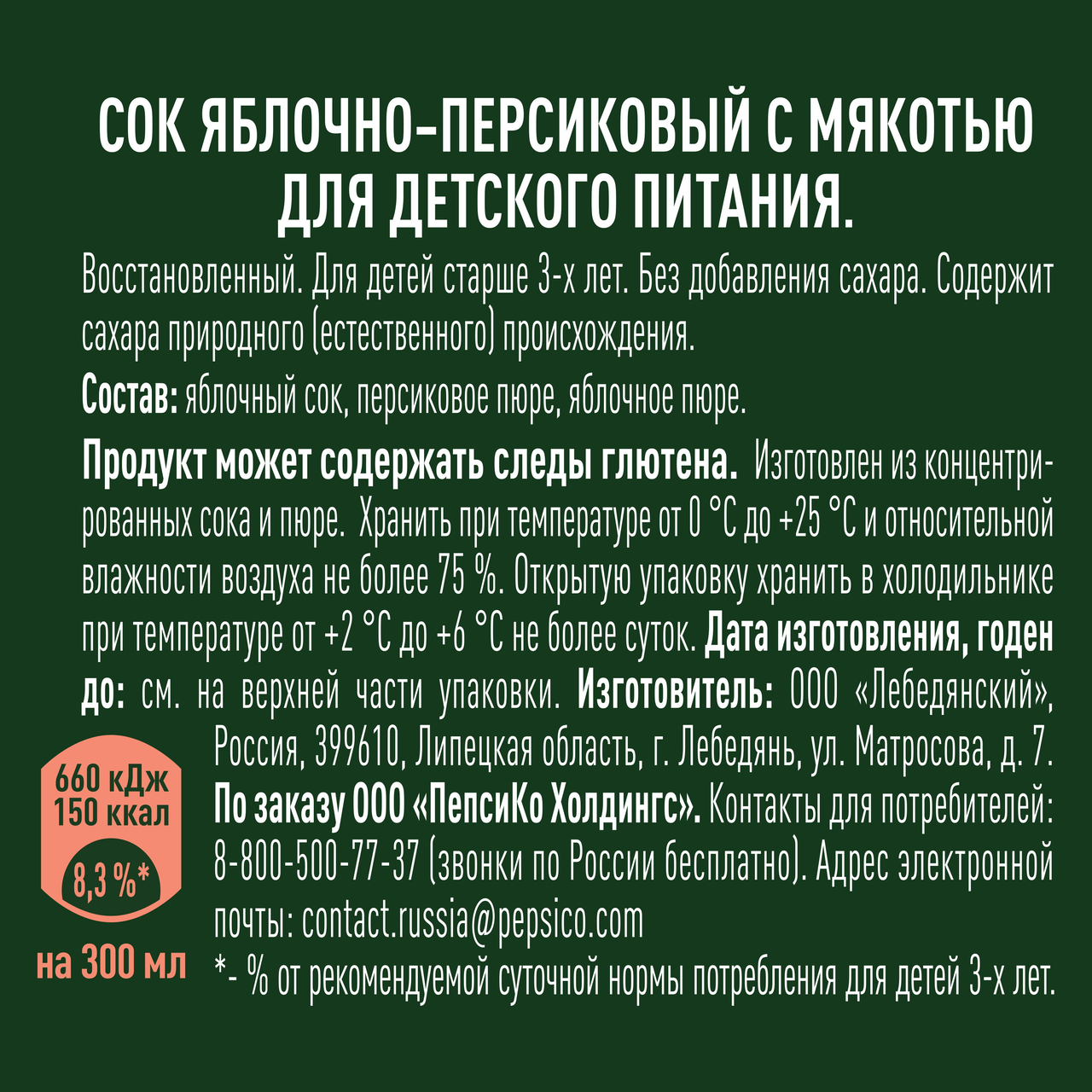 Сок с мякотью J7, яблоко/персик, 0,3 л