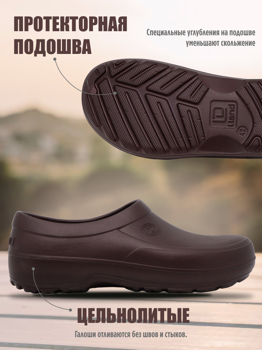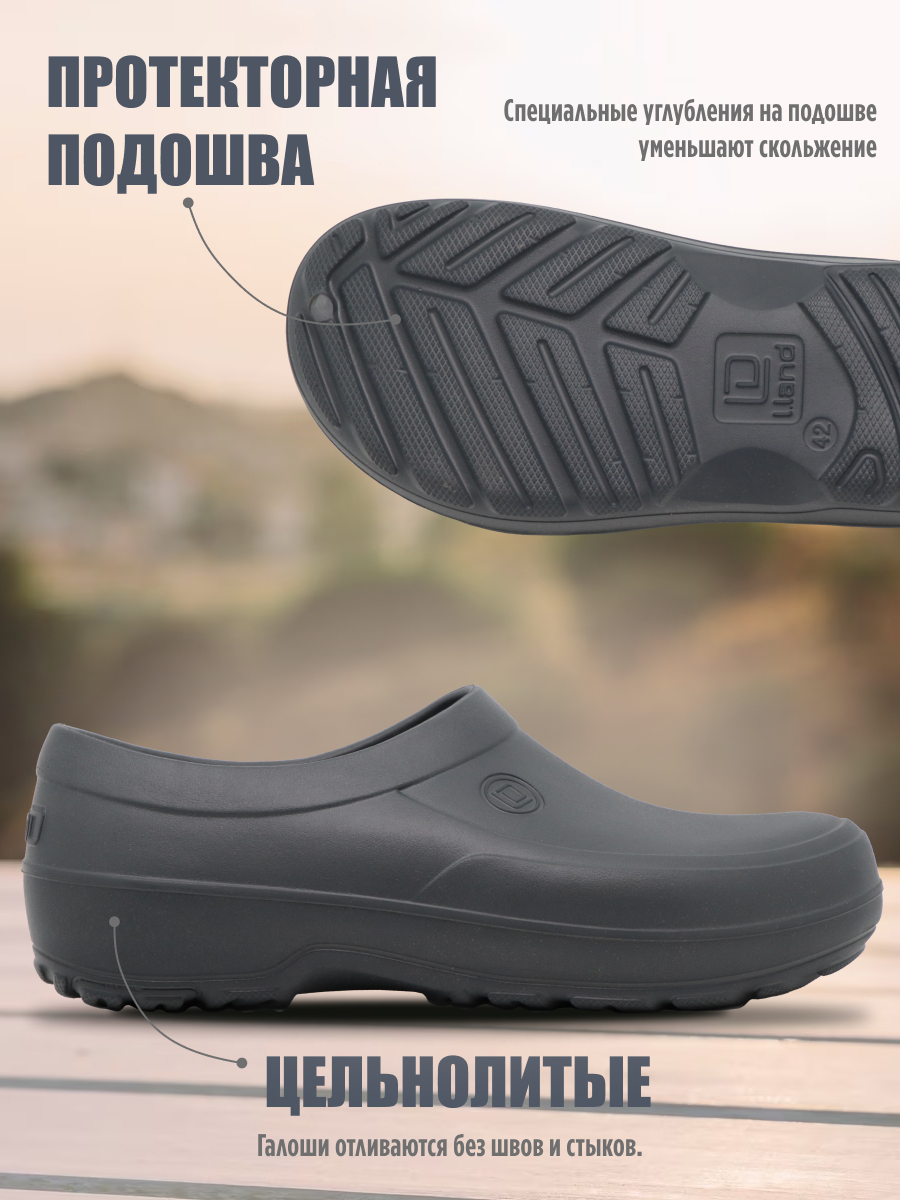Галоши в линейке садовой обуви - глэмпы. Эти галоши очень удобно сидят на ногах, не слетают, надежно защищают от влаги и сырости. Садовые мужские галоши Lucky Land из легкого материала ЭВА. Лаконичные, красивые модели для походов и для отдыха на природе, прогулок в лесу, для прогулок с собаками и на каждый день. Практичные садовые калоши для мужчин - отличное решение для городской и загородной жизни! Ультра комфортные, мягкие летние калоши прекрасно подойдут для работы в саду и огороде. Модель актуальна для разных сезонов, галоши отлично подходят для дождливой погоды и слякоти, а также для лета и межсезонья. Обувь из эва сохраняет форму при высоких нагрузках и продолжительной носке. Галоши лаки лэнд из эва в несколько раз легче, чем резиновые галоши. За галошами очень легко ухаживать, их можно полностью помыть водой, протереть насухо и они снова готовы к эксплуатации. Непромокаемые и водонепроницаемые. Стильный внешний вид галош, современные расцветки и отличное качество - вот наше преимущество.