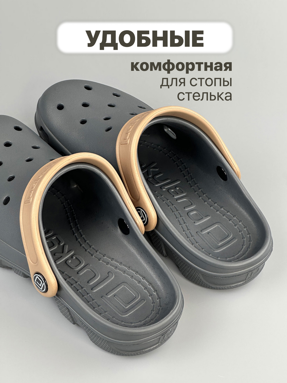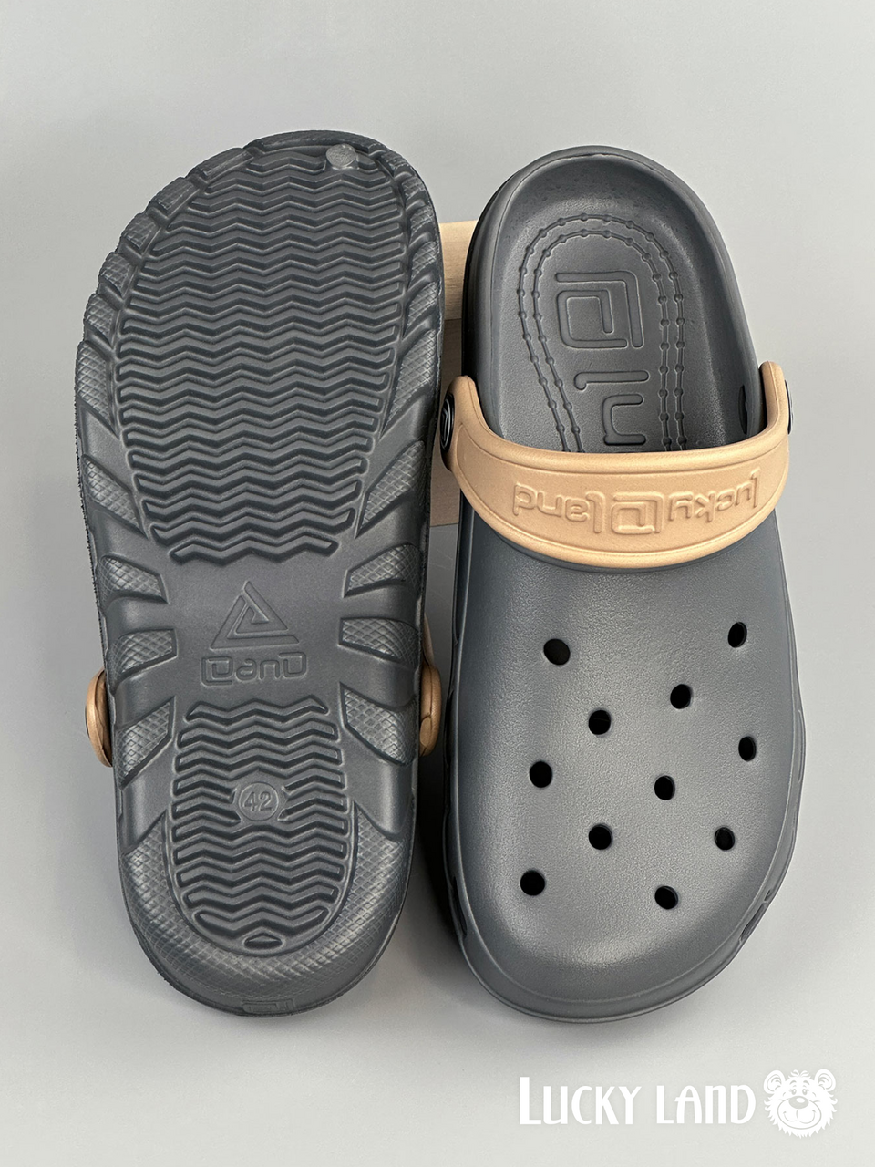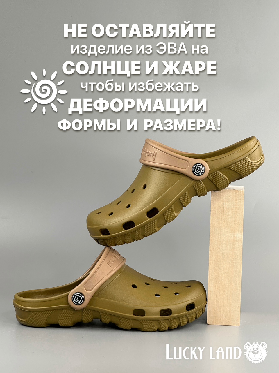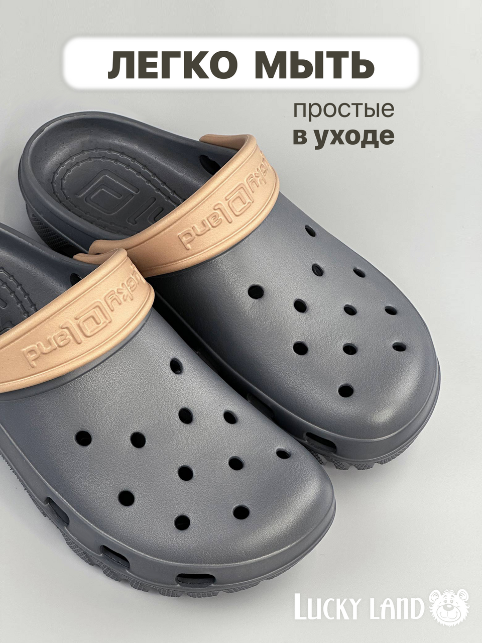 Ультра комфортные мягкие мужские сабо Lucky Land из легкого материала EVA. Обувь мужская из эва сохраняет форму при высоких нагрузках и продолжительной носке, отличается эластичностью и упругостью. Гибкие и практичные кроксы клоги в несколько раз легче и мягче, чем резиновые шлепанцы. Имеют акцентный ремешок для фиксации стопы при ходьбе. Стильные мужские шлепки сабо идеально подходят для работы, для сотрудников обслуживания и медицины (для поваров, для медработников, для массажистов, медицинских центров и салонов красоты). Обувь из эва проста в уходе и эксплуатации, достаточно протереть влажной тряпкой. Летние мужские тапки идеально подойдут для спортзала и бассейна, для дома, для пляжа, для дачи и огорода, для повседневной носки на каждый день (медицинские/рабочие/поварские). Дизайн нашей обуви - оптимальное соединение прекрасного внешнего вида, удобства и практичности.