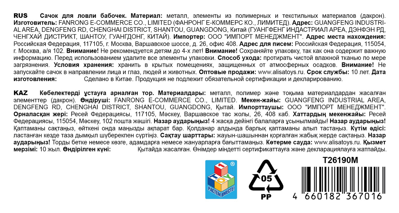 Сачок металлический с телескопической ручкой от 1Toy - это яркий аксессуар для маленьких исследователей. Сачок для бабочек создан, чтобы помочь ребенку увлекательно проводить время на свежем воздухе, знакомиться с природой и развивать ловкость. Важные особенности: сачок с диаметром обода 19см и глубиной сеточки 24см идеально подходит для ловли бабочек и других насекомых; телескопическая ручка сачка с регулировкой длины от 37 до 66см позволяет легко подстраивать сачок под рост ребенка и конкретную ситуацию; прочный металлический стержень сачка обеспечивает надежность, а легкая сетка из дакрона не утяжеляет конструкцию; яркая расцветка привлекает внимание детей и делает процесс игры еще более захватывающим.