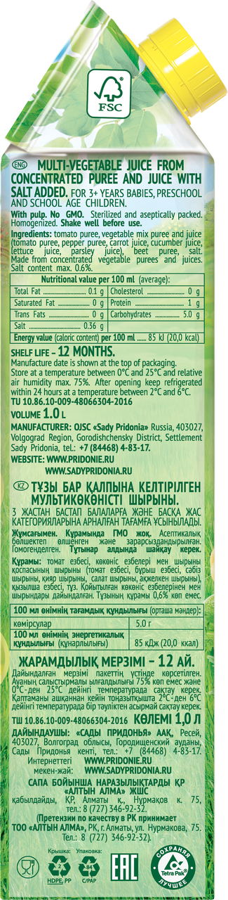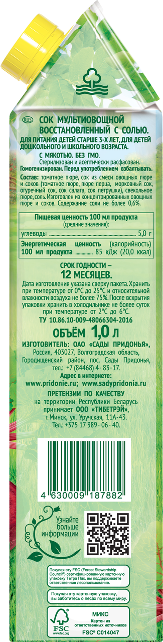 Мультиовощной сок со свеклой Сады Придонья — это превосходное решение для ежедневного рациона взрослых и детей от 3-х лет! Специально для изготовления сока агрономы компании сады Придонья выращивают свёклу сорта Пабло с тонкой кожицей и сочной, нежной мякотью. Внешний вид упаковки может различаться. Изменение дизайна – временная мера.