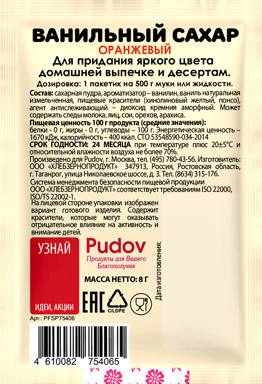 Сахар ванильный С.Пудовъ оранжевый, 8г