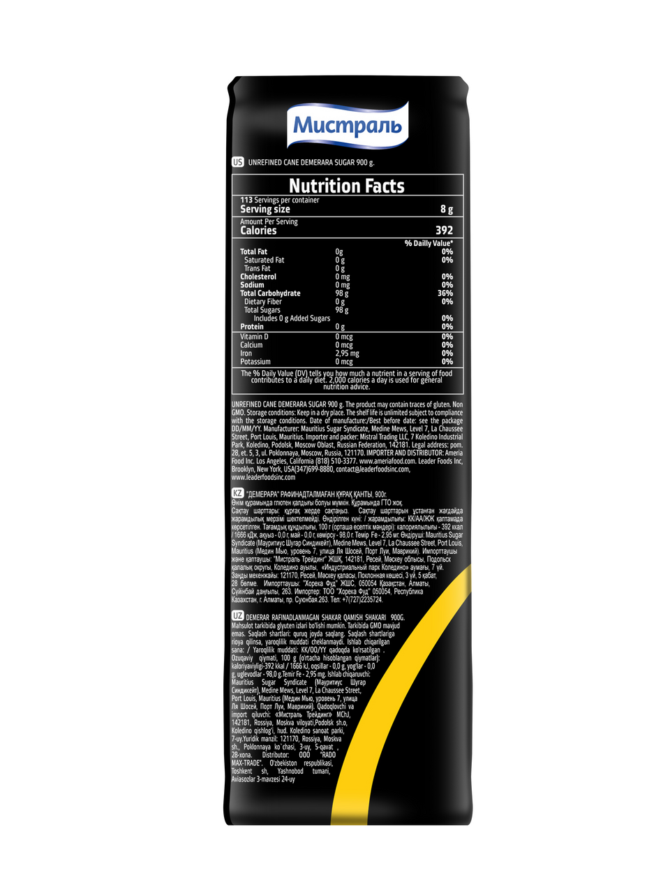 Сахар Мистраль Демерара тростниковый нерафинированный, 900г