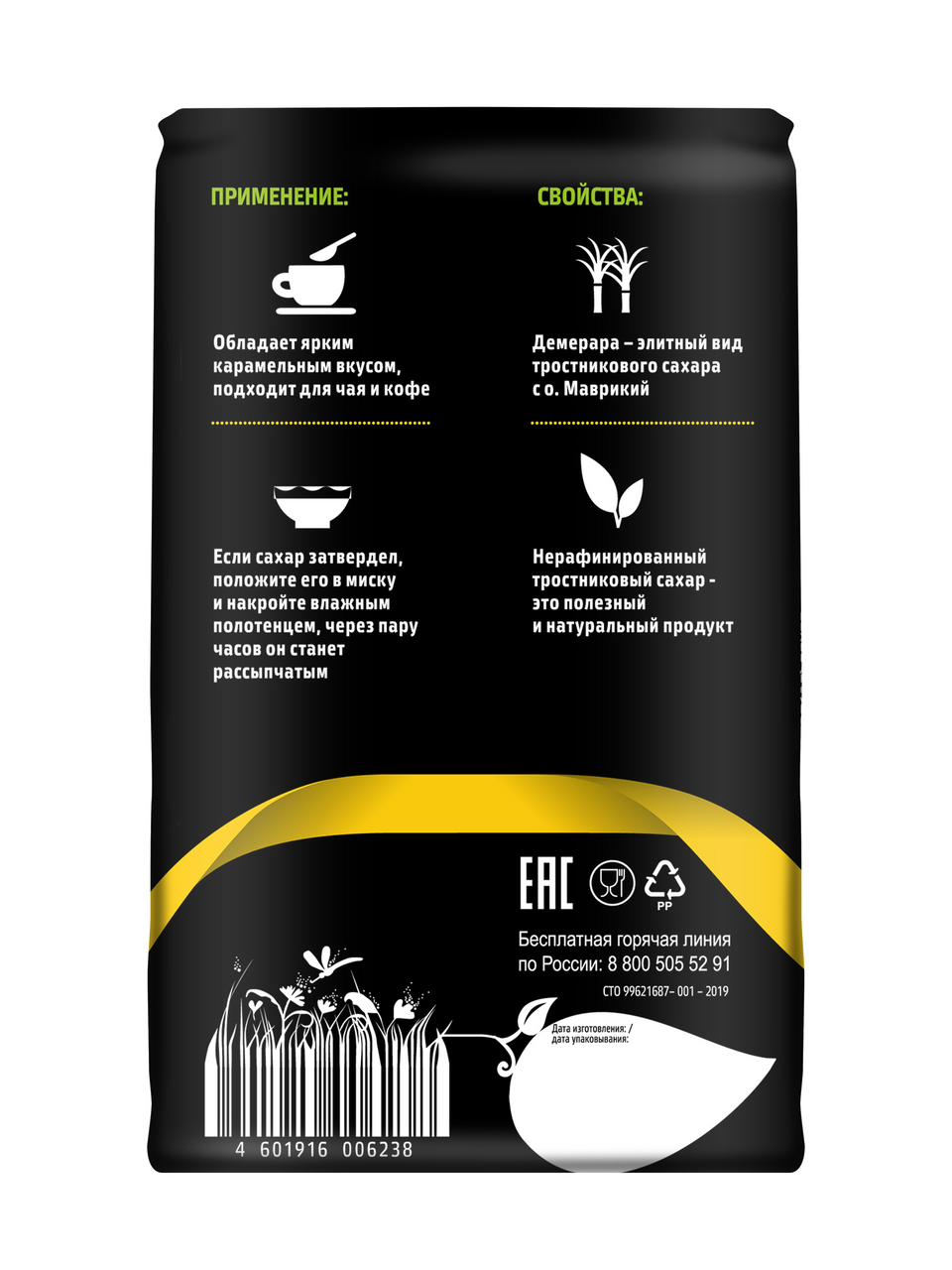 Коричневый сахар сорта Демерара с ярко выраженным ароматом и вкусом карамели используется в кулинарии для обсыпки кондитерских изделий и в качестве ингредиента во время приготовления блюд. Он изготовлен п�� уникальной технологии из тростника, растущего в экологически чистом месте планеты – на тропическом острове Маврикий. Свежесрезанные стебли отжимают под прессом, а полученный сок выпаривают, в результате чего получаются сладкие кристаллы. Их обволакивает патока, которая первой растворяется при таянии или погружении сахара в воду. Продукт поддается минимальной промышленной обработке, благодаря чему сохраняет природную пользу и ценные микроэлементы, в отличие от белого рафинада.