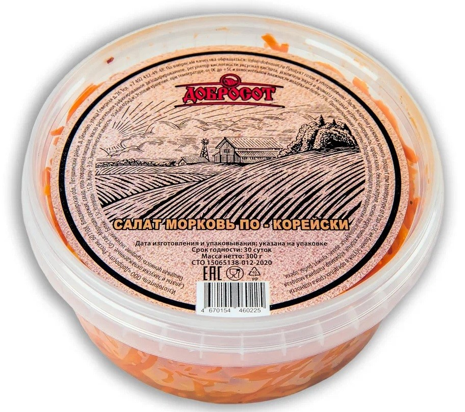Морковь свежая, сахар, соль поваренная пищевая, масло растительное рафинированное дезодорированное, регулятор кислотности уксусная кислота, усилитель вкуса и аромата глутамат натрия, консерванты: сорбат калия, бензоат натрия, чеснок, перец чили хлопья, кориандр, паприка молотая.