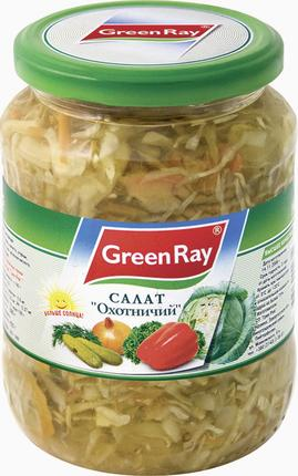 Салат Охотничий GREEN RAY, 720мл выручит в пути или во время отдыха на природе с друзьями, а также станет прекрасной закуской ко многим напиткам. Продукт изготовлен из натуральных ингредиентов – огурцов, лука и капусты – по проверенной временем традиционной методике, благодаря которой удалось сохранить все полезные качества овощей. В составе блюда нет консервантов и различных пищевых добавок. Некоторой пикантности салату придают специи, а дольше сохранить овощи позволяет рассол на основе уксуса. Продукт обладает приятным, в меру соленым и кислым вкусом, а при своей низкой калорийности он прекрасно утоляет голод. Салат Охотничий GREEN RAY, 720мл можно приобрести по привлекательной цене в торговом центре METRO #incity. Состав: огурцы, уксус, соль, сахар, вода, специи, капуста, лук, лимонная кислота. Пищевая ценность в 100г продукта: углеводы 5,6г. Энергетическая ценность: 21 ккал. Условия хранения: хранить при температуре от 0'С до +25'С. Срок годности: 48 месяцев.