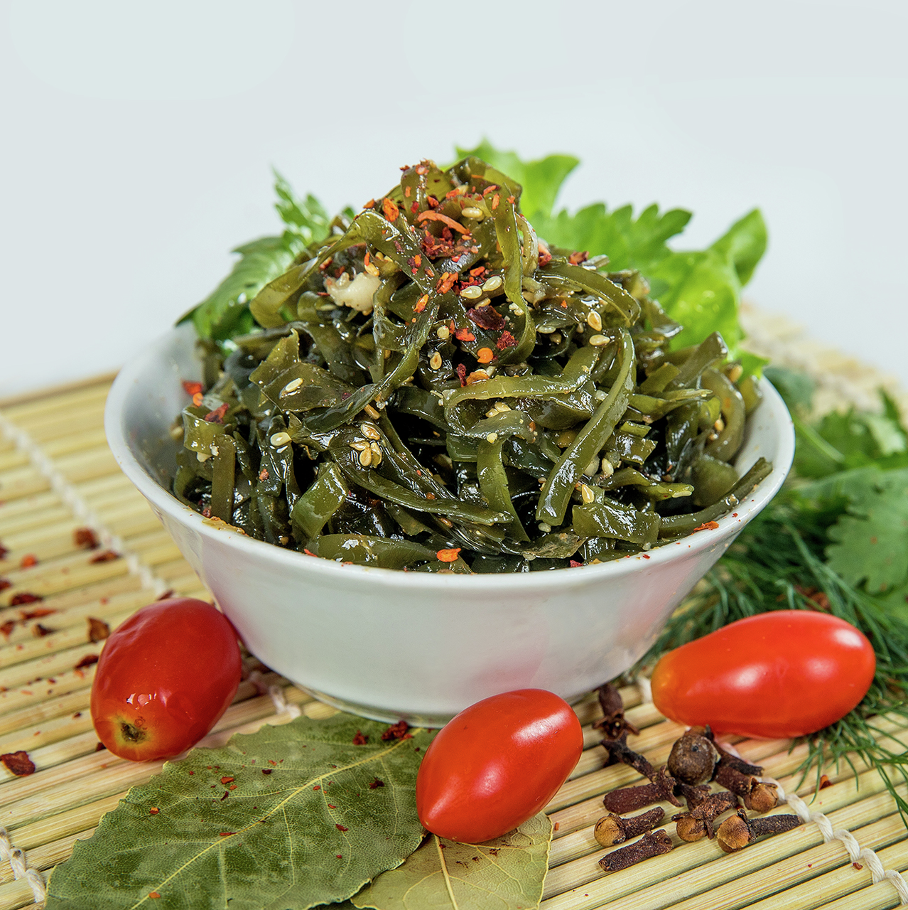Морская капуста (ламинария) - это съедобная водоросль, в состав которой входит идеально сбалансированный витаминно-минеральный комплекс. При регулярном употреблении она снижает риск развития эндокринных заболеваний и атеросклероза, укрепляет иммунную систему, улучшает обмен веществ, снижает уровень холестерина в крови. В состав также входят кунжутные семечки , что придает блюду приятные пикантные нотки. Продукт полностью готов к употреблению. Морская капуста содержит большое количество йода, который полезен для щитовидной железы. Витамины группы В, С, Е и D, которые способствуют укреплению иммунитета. Малое количество калорий в составе способствует похудению, улучшает обмен веществ и регулирует водно-солевой баланс. Салат из морской капусты По-корейски идеально подходит для легкого вечернего перекуса или в качестве закуски на стол.