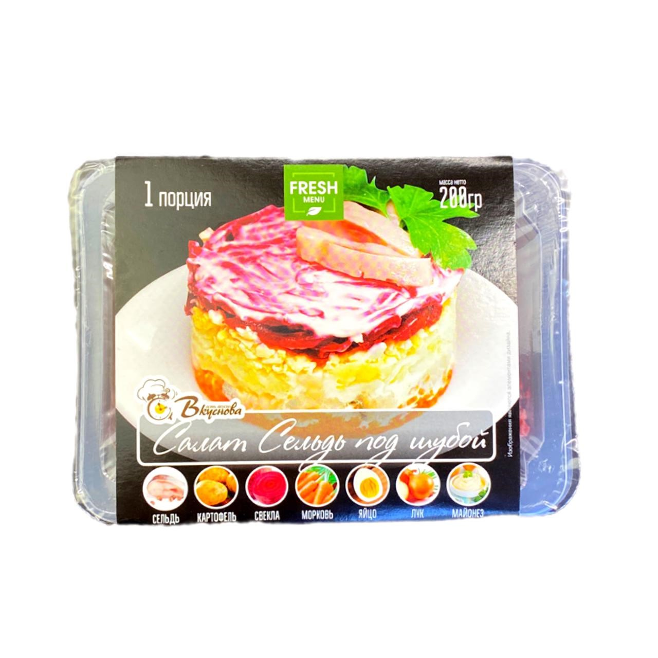 Готовый салат из филе сельди, свеклы, моркови, картофеля и яйца, заправленный домашним майонезом. Все ингредиенты аккуратно выложены слоями, как и требует классическая рецептура Сельди под шубой. Салат приготовлен из свежих и качественных ингредиентов. Без консервантов и усилителей вкуса. Большая порция отлично подойдет для семейного обеда. Это классика новогоднего стола. В составе ничего лишнего. Никаких искусственных консервантов. По-домашнему вкусно.