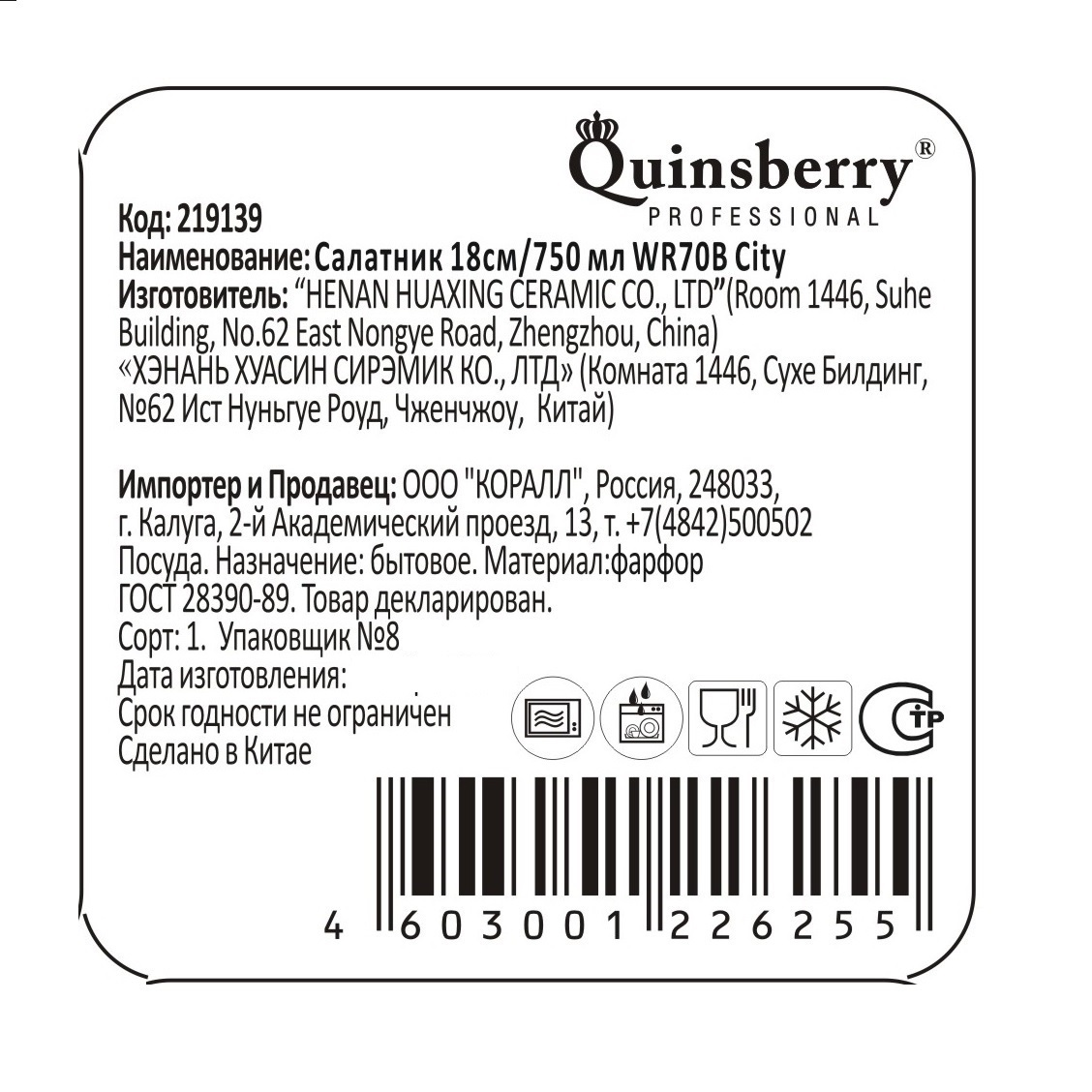Салатник Quinsberry Professional City, 18 см предназначен для повседневного использования и сервировки стола. Материал, из которого выполнена посуда, способен придать праздничному столу атмосферу торжественности. При этом материал не окисляется, не сохраняет запаха пищи и не впитывает масло. Он хорошо сохраняет температуру блюд. Экологически чистый и безопасный для здоровья, он одновременно является очень хрупким материалом, поэтому требует к себе бережного отношения. При соответствующем практичном уходе он способен прослужить неограниченное количество времени, не теряя своего первозданного внешнего вида. Глубокий сосуд с широкими стенками используется для эффектной подачи салатов, заливных из рыбы и мяса, а также маринадов и солений или использовать, как конфетницу и сахарницу. Эту утварь также можно использовать как украшение для интерьера в виде основы для композиции с фруктами или цветами при декорировании кухни.