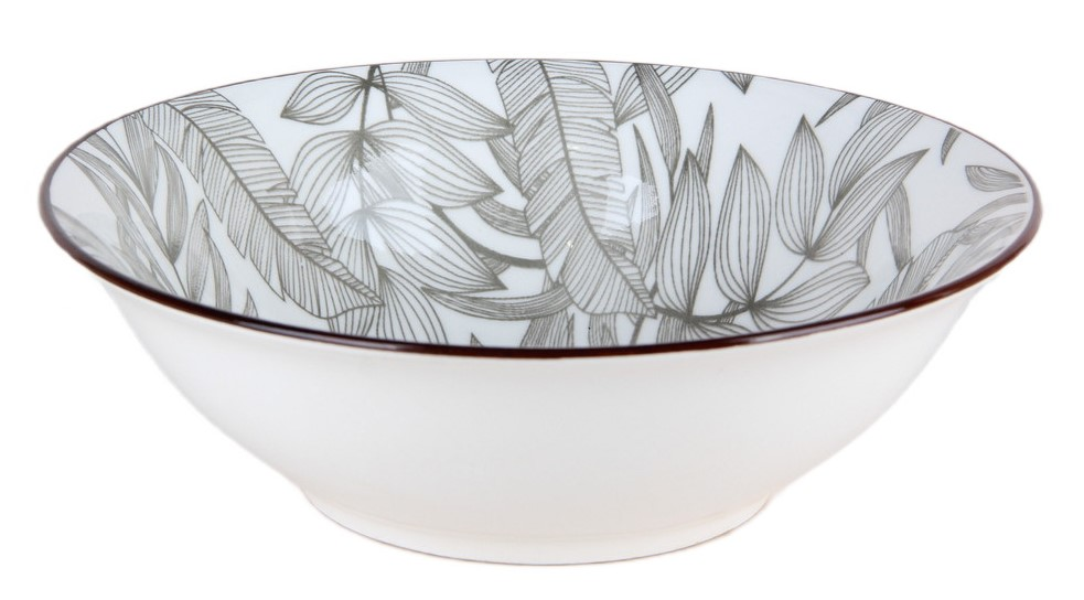 Коллекция посуды Branch изготовлена из фарфора. В коллекцию входят салатник, бульонница, тарелка десертная, тарелка обеденная и тарелка глубокая. Фарфор устойчив к сколам и обеспечит долгий срок службы вашей посуде. Современный дизайн бульоннице украшен с черно-белой композицией листьев. Можно мыть в посудомоечной машине (ПММ) и использовать в микроволновой печи (СВЧ). Подойдет для порционной подачи супов, бульонов, салатов. Изделия можно использовать в микроволновой печи и посудомоечной машине.