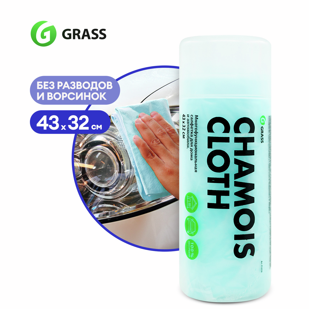 Салфетка для автомобиля Grass в тубе, 43 x 32см