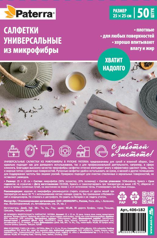 Салфетки Paterra микрофибра в рулоне 25 x 25см, 50шт