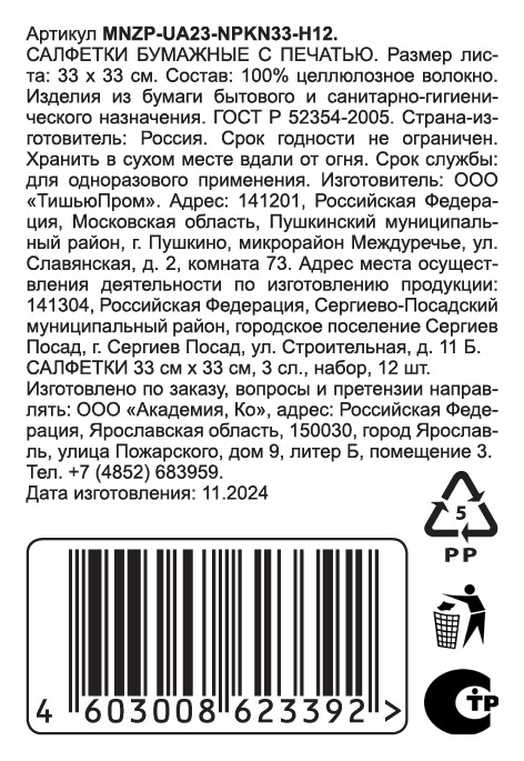 - Тип Бумажные салфетки