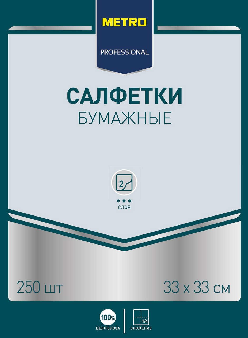 METRO PROFESSIONAL Салфетки бумажные белые 2-слойные 33х33см, 250шт