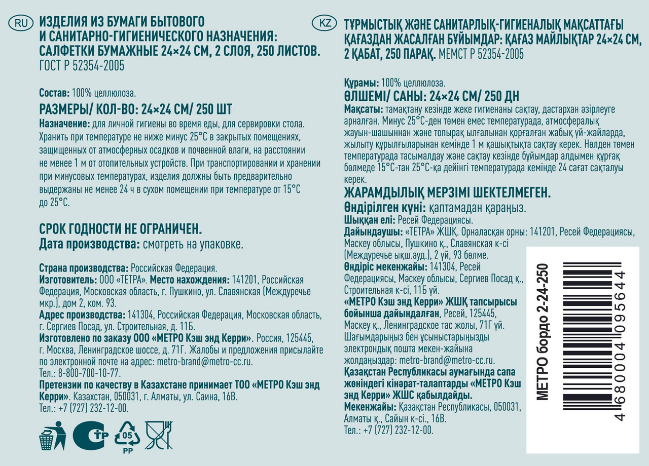 - Тип Бумажные салфетки