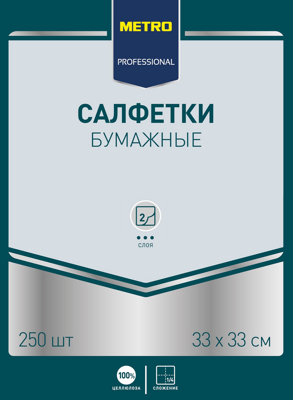 METRO PROFESSIONAL Салфетки бумажные двуслойные красные 250шт, 33x33см