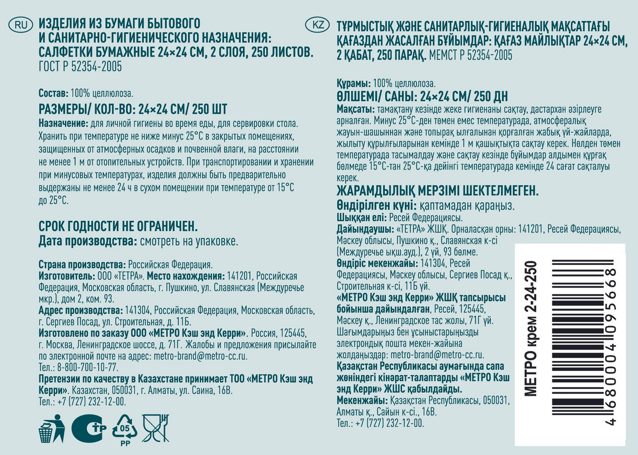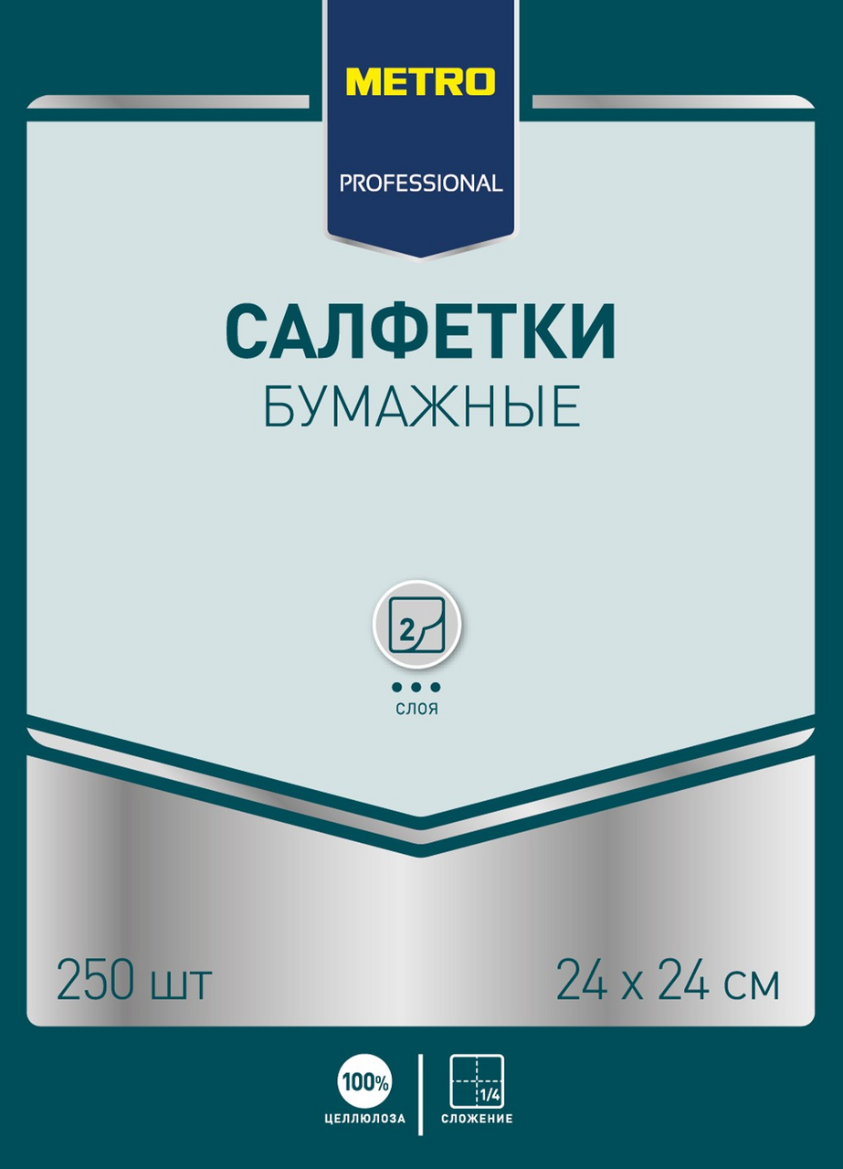 METRO PROFESSIONAL Салфетки бумажные двуслойные кремовые 250шт, 24x24см