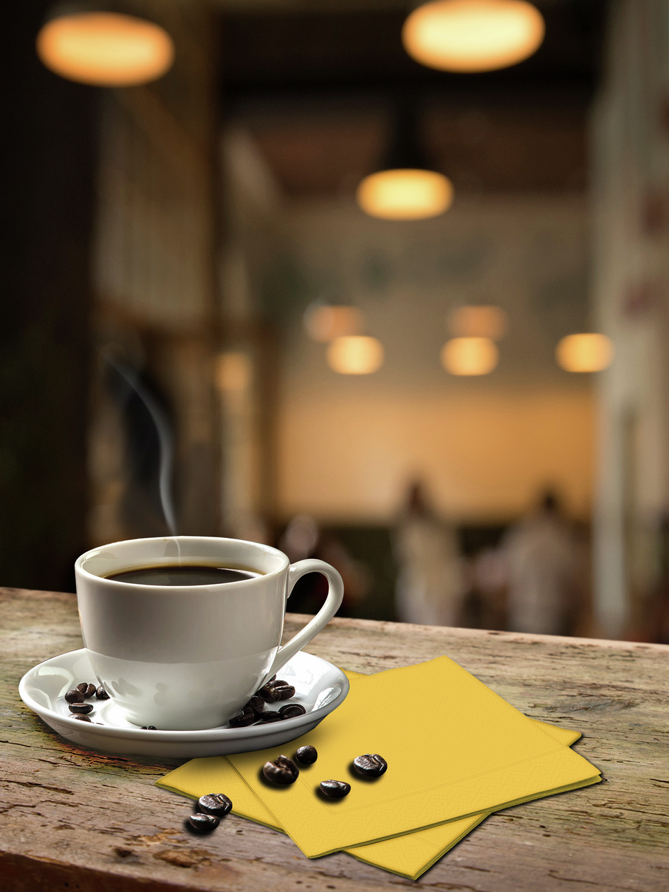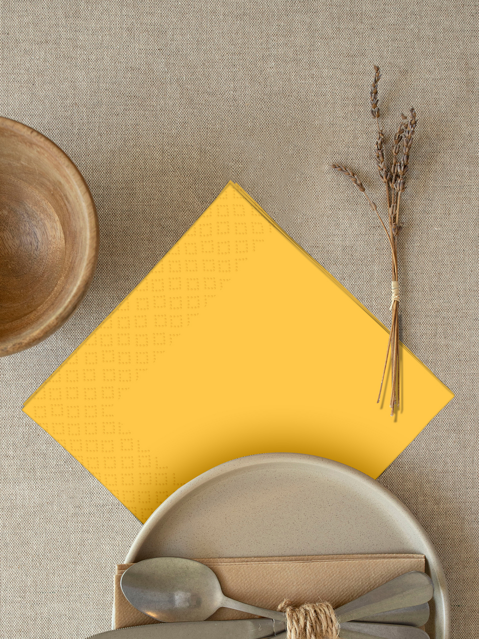 Однотонные двухслойные салфетки желтого цвета. Незаменимый атрибут для дома, офиса, ресторана.Стандартный размер 33х33 см подходит для размещения в любых салфетницах. Универсальны в использовании, обеспечивают мгновенную чистоту и комфорт в любой ситуации.Однотонные салфетки это не только практичный, но и стильный аксессуар, который дополнит ваш интерьер, создаст нужную атмосферу и поддержит фирменный стиль заведения. Идеальны для создания элегантной сервировки. Изготовлены из высококачественной 100% целлюлозы, хорошо впитывают влагу, прочные и мягкие. Они плотные, приятные и нежные на ощупь. Идеально подходят для ухода за кожей лица и рук. Гипоаллергенные и не вызывают раздражения при любом типе кожи. Экологически безопасные для человека и окружающей среды.