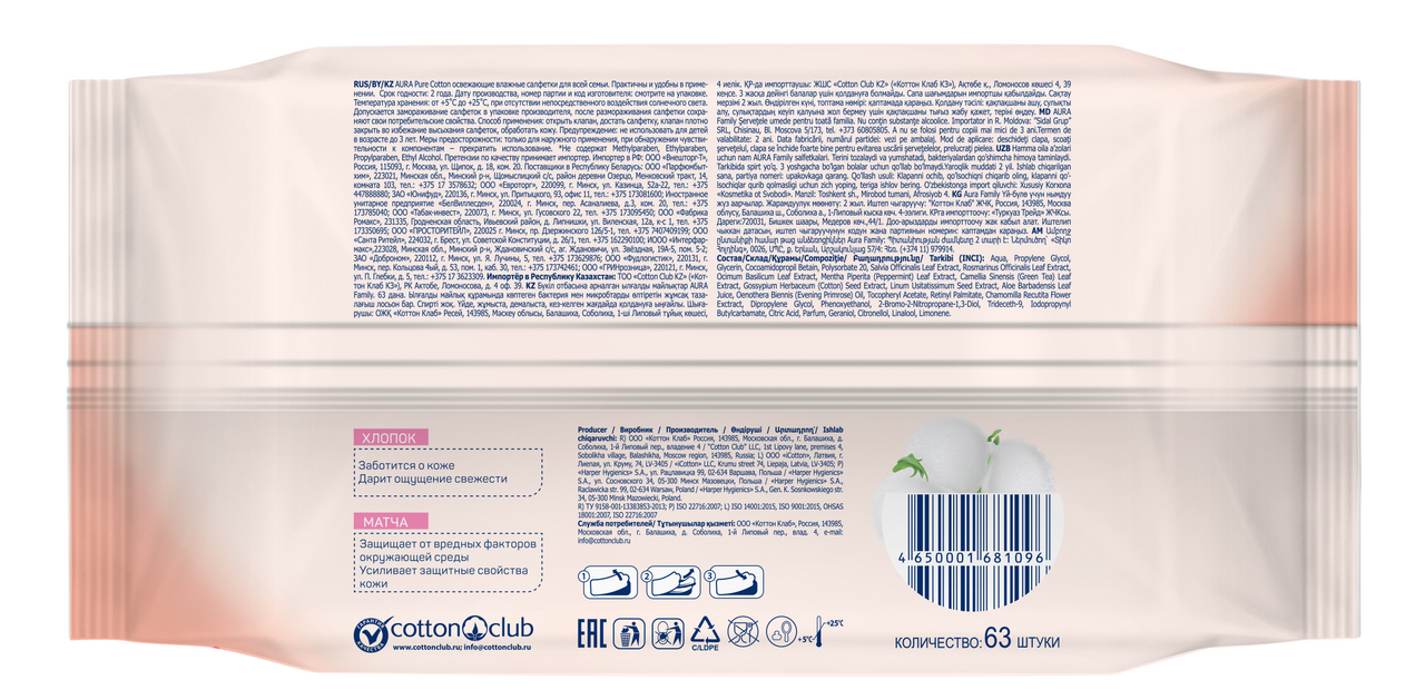 Влажные салфетки освежают кожу. Лосьон разработан на основе очищенной воды. В состав входит витаминный комплекс, который оказывает благоприятное воздействие на кожу рук и тела. Витамин А поддерживает структуру и влажность клеток кожи, Витамин E улучшает микроциркуляцию крови в коже Витамин F защищает от сухости и шелушения. Подходят для всех типов кожи.