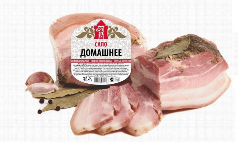 Произведено из охлажденного свиного шпика, приправленного натуральными специями - черным молотым перцем, кориандром, чесноком, тмином. Продукт готовится по классическому рецепту, без использования искусственных добавок и консервантов. Сало с мясными прослойками отличается нежной консистенцией и в меру соленым, пикантным вкусом.