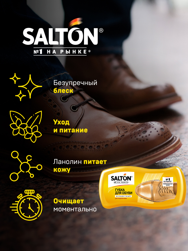 Губка Salton для обуви из гладкой кожи, бесцветный, 50г х 2 шт