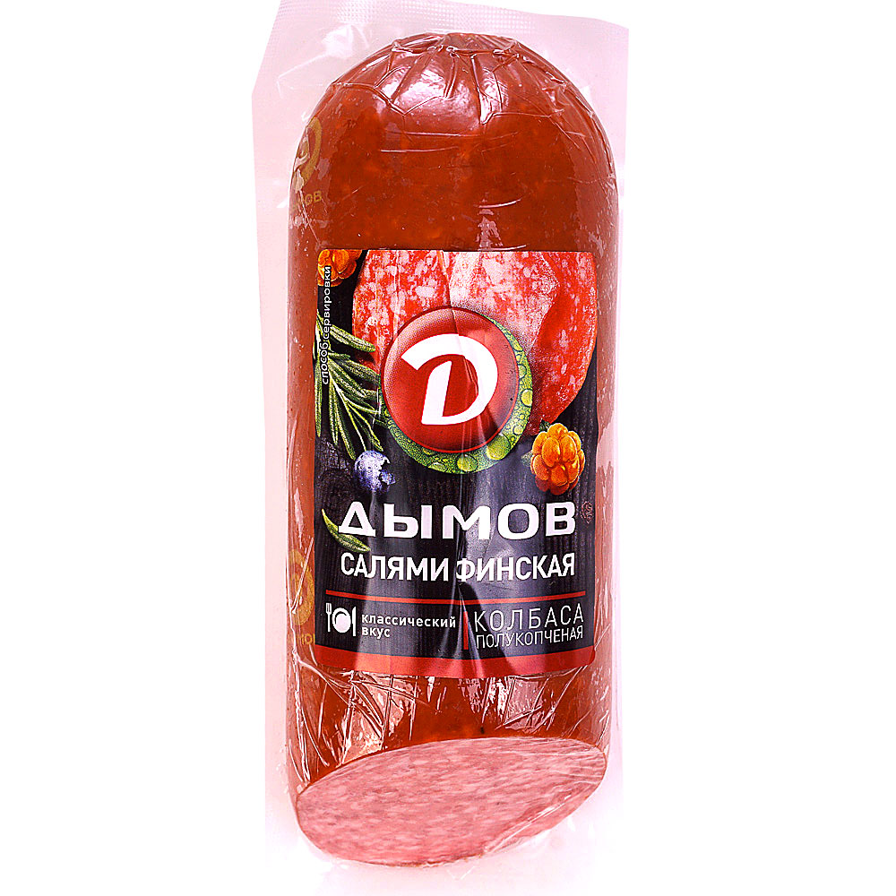 Салями Финская — полукопченая колбаса ТМ Дымов, основными ингредиентами которой являются говядина и свинина с мелкими вкраплениями шпика. Бутерброды к чаю или кофе, начинка для домашней пиццы или другой выпечки, в салатах и горячих и холодных закусках с грибами, сыром и пряностями, — этот продукт будет кстати во многих ситуациях и блюдах, позволяя насладиться мясным вкусом с пикантными нотками, которые дарят ему специи, и быстро утолить голод. Упаковано в вакууме. Охлажденная. Cрез.