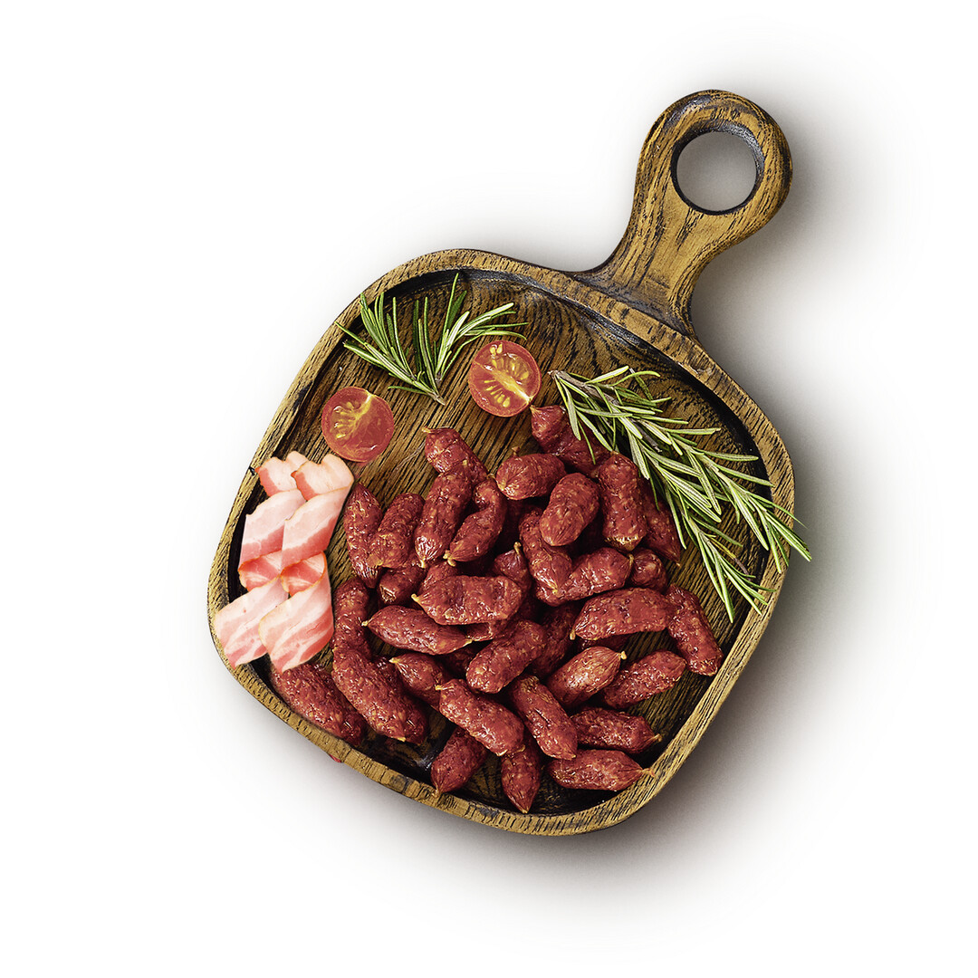 Metro Chef Салями мини с беконом, 500г – это питательный продукт с интересным неповторимым вкусом, который отлично подходит в качестве сытного перекуса. В основе продукта – свинина. В измельченных кусочках мяса прослеживаются вкрапления шпика. Салями часто используют в кулинарии: в салатах и пиццах, а также с разными видами хлеба и сыра. Благодаря небольшому размеру мини-колбаски не нужно разрезать и можно подавать к столу в готовом виде.