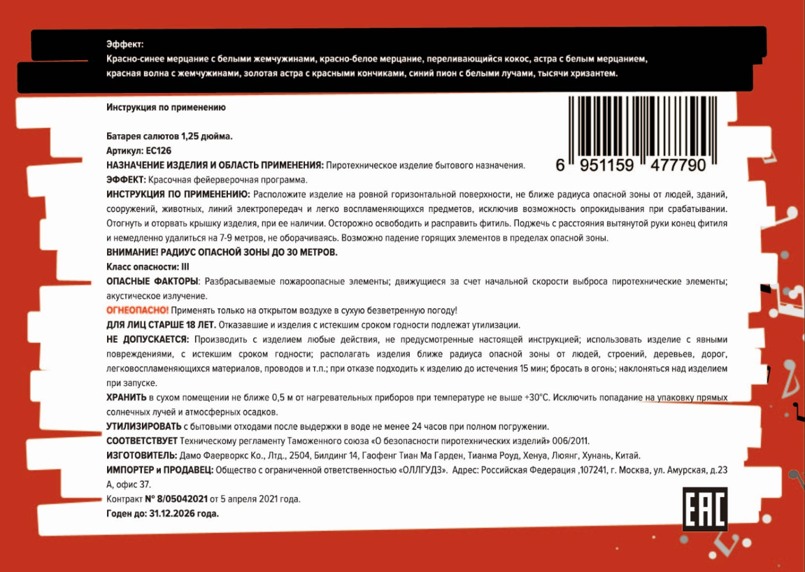 Эффекты: Красно-синее мерцание с белыми жемчужинами, красно-белое мерцание, переливающийся кокос, астра с белым мерцанием, красная волна с жемчужинами, золотая астра с красными кончиками, синий пион с белыми лучами, тысячи хризантем.