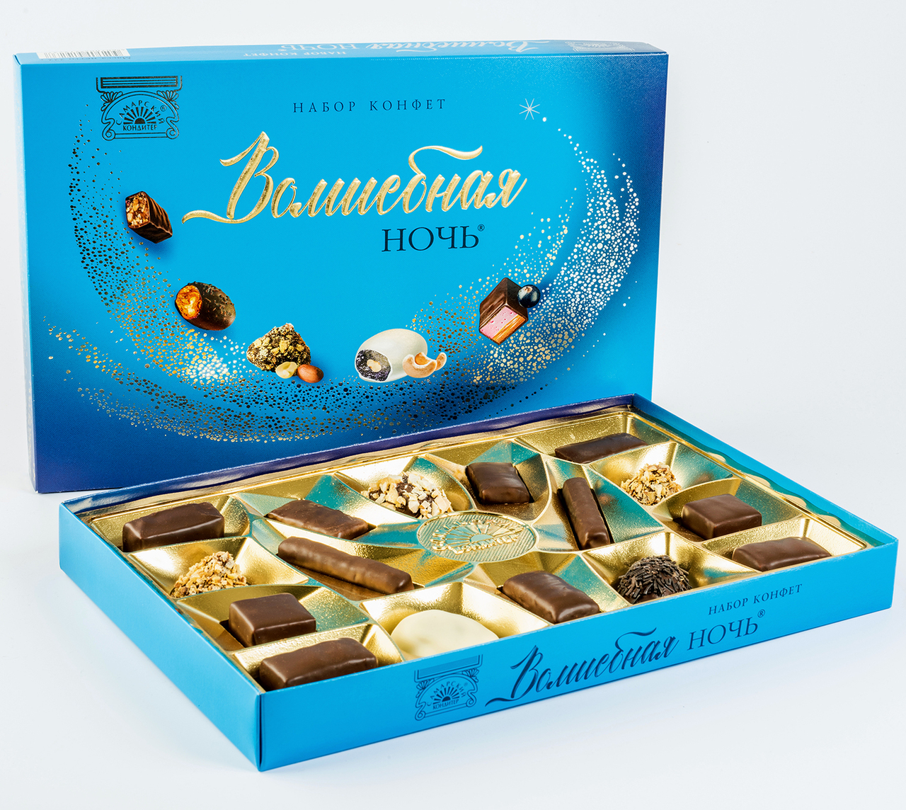 Набор конфет Самарский кондитер Волшебная ночь, 222г – это оригинальное лакомство. Они помещены в надежную упаковку, поэтому станут оригинальным подарком для коллег, родных и близких на любое торжественное событие, такое как новый год, день рождения, 8 марта, день влюбленных и другое. Кондитерское изделие станет удачным дополнением к чаепитию, как на празднике, так и в любое другое удобное время с коллегами на работе. Нежные как шелк и соблазнительные, они каждый раз будут раскрываться для вас новыми красками. Для их производства использованы качественные натуральные ингредиенты, без красителей и других вредных добавок. Приобрести набор конфет Самарский кондитер Волшебная ночь, 222г можно в торговом центре METRO.