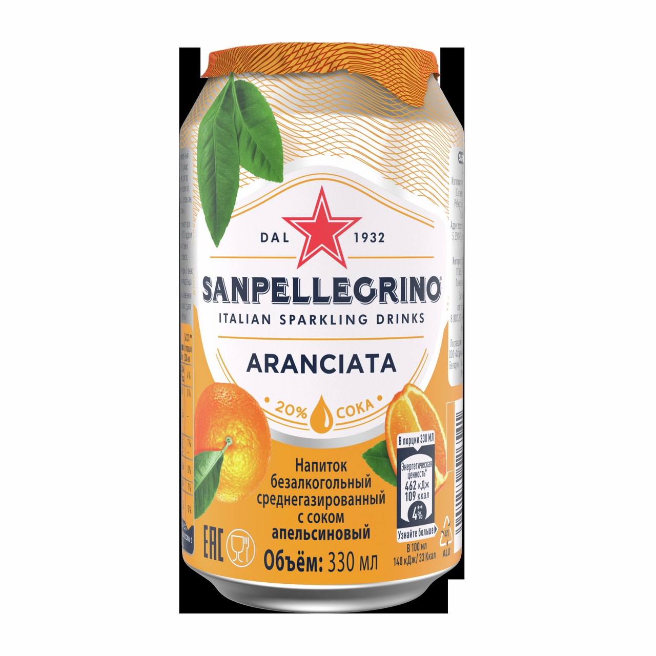 Sanpellegrino Aranciata — сокосодержащий газированный напиток, созданный для тех, кто хочет насладиться вкусом классических сицилийских апельсинов в сочетании с большим количеством пузырьков. Напиток производится исключительно из настоящих итальянских апельсинов, которые экспортируются по всему миру. Напиток изготавливается без использования консервантов и красителей. Количество апельсинового сока в напитке составляет от 15,6% до 18%. Кроме апельсинового сока в состав лимонада входит минеральная столовая вода "S. Pellegrino". Воду добывают из одноименного источника "Сан Пеллегрино", расположенного на глубине 500 метров и выходящего на поверхность в предгорье итальянских Альп на территории Сан-Пеллегрино-Терме.