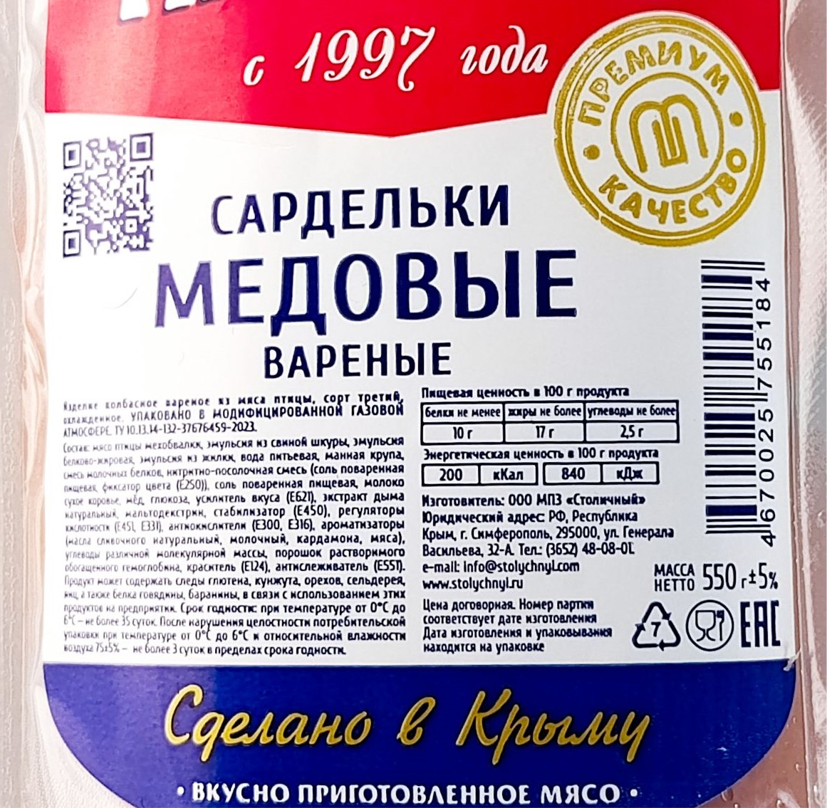 Сардельки Мясковъ Медовые вареные, 550г
