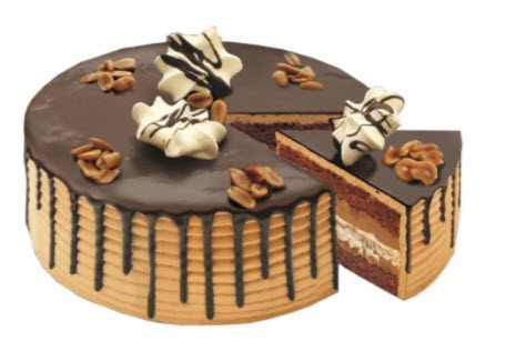 Спред растительно – жировой, крем на растительных маслах вода, полно-стью гидрогенизированные растительные масла и жиры пальмоядровые, масла рапсовые, подсолнечные, кукурузные и соевые в различных пропорциях, сахар, стабилизаторы Е420ii, Е463, молочный белок эмульгаторы Е427е, Е322, соль, ароматизаторы, краситель Е 160а, масло сладко- сливочное несоленое, ядро ореха грецкого сырое, мука пшеничная хлебопекарная высшего сорта, гель кондитерский декоративный: карамель, патока, покрытие для кондитерских изделий: зеркальный гель, крахмал пшеничный, полуфабрикат кондитерский крем: Каравелла Крем Хазелнат, вода питьевая, глазурь белая, какао-порошок, коньяк, глазурь: кондитерская темная, пищевая добавка: Эмульгатор Бисквита, разрыхлитель: гидрокарбонат натрия, полуфабрикат отделочный: масса желейная не ароматизированная белая, вино, смесь сухая для приготовления отделочных полуфабрикатов: заварной крем, пищевая добавка: агар, Гельагар, ароматизатор пищевой ванилин, соль, основа кондитерская: Активита, регулятор кислотности: кислота лимонная моногидрат, консервант: сорбиновая кислота.