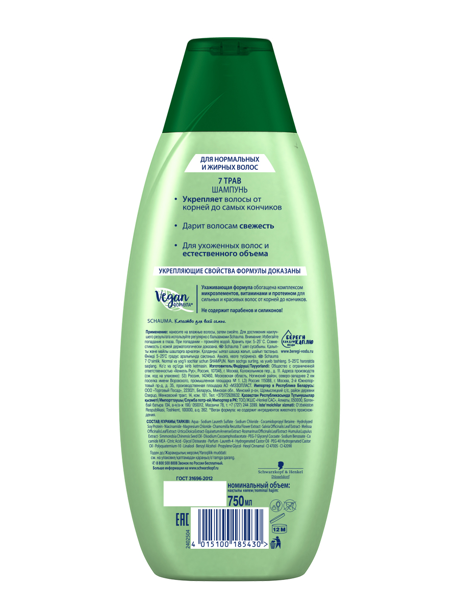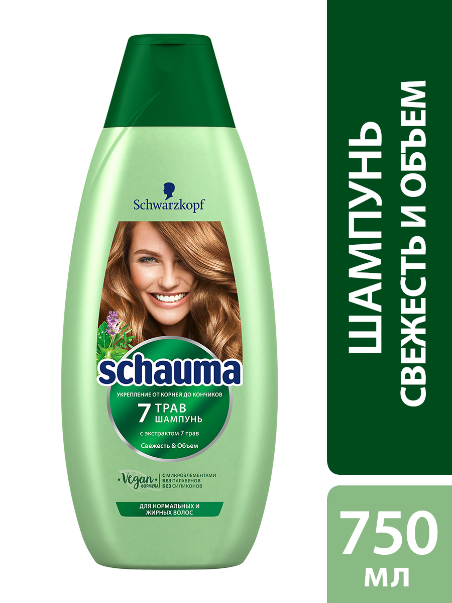 Шампунь Шаума 7 Трав для нормальных и жирных волос свежесть и объем, 750мл