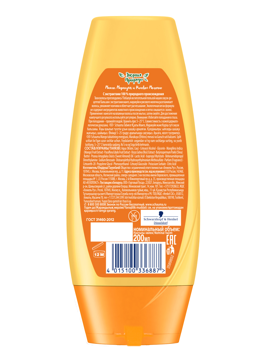 Бальзам для волос Шаума Энергия природы Увлажнение и восстановление для длинных волос с секущимися кончиками, 200мл