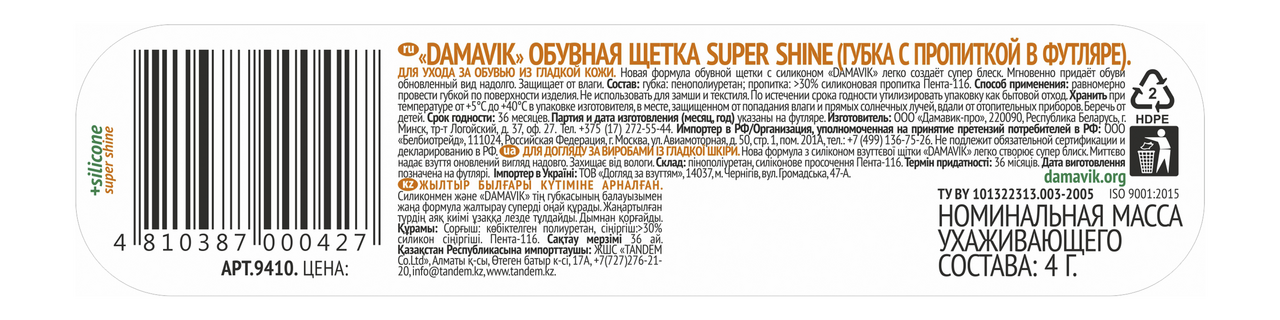 Щетка для обуви Damavik Super Shine бесцветная, 42г