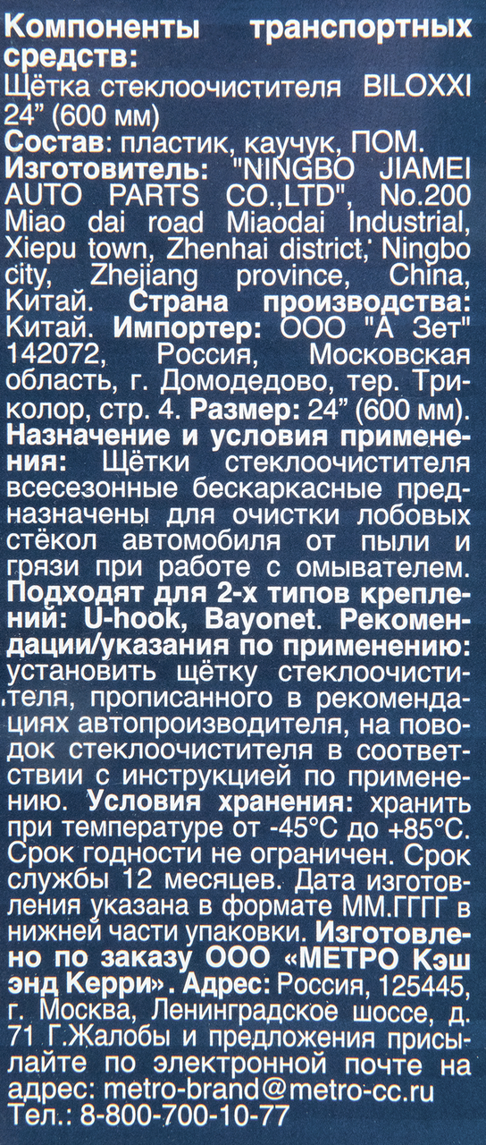 Щетка стеклоочистителя Biloxxi PFW24, 60см
