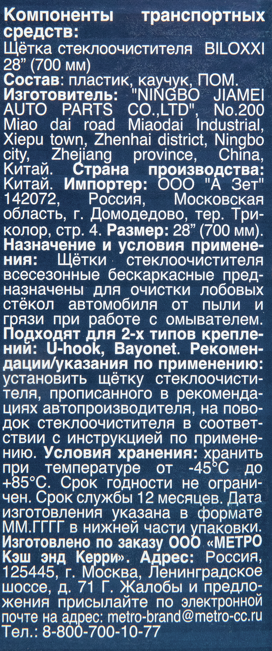 Щетка стеклоочистителя Biloxxi PFW28, 70см