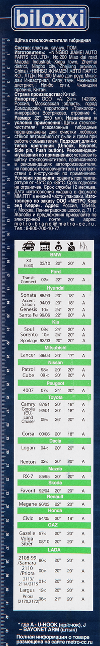 Щетка стеклоочистителя Biloxxi гибридная 22, 550мм