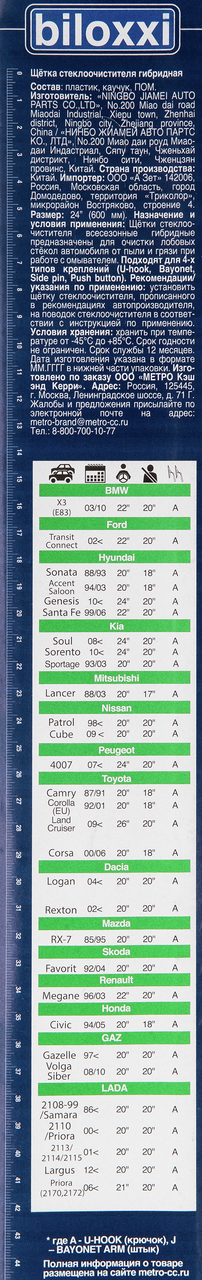 Щетка стеклоочистителя Biloxxi гибридная 24, 600мм