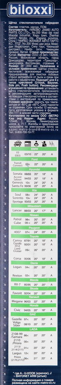 Щетка стеклоочистителя Biloxxi гибридная 26, 650мм