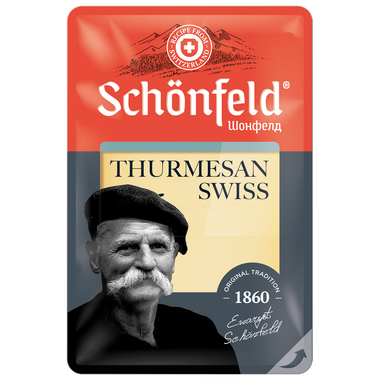 Сыр Schonfeld Швейцарский Турмезан полутвердый нарезка 52%, 125г