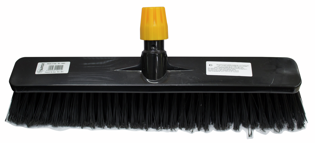 Уличная промышленная пластиковая швабра. Совместима с метелочными ручками и ручкками с отверстием. Особо стойкие щетинки. Высокое качество продукции гарантируется опытом и знаниями Apex. Размер: 50 x 13 x 19 см.