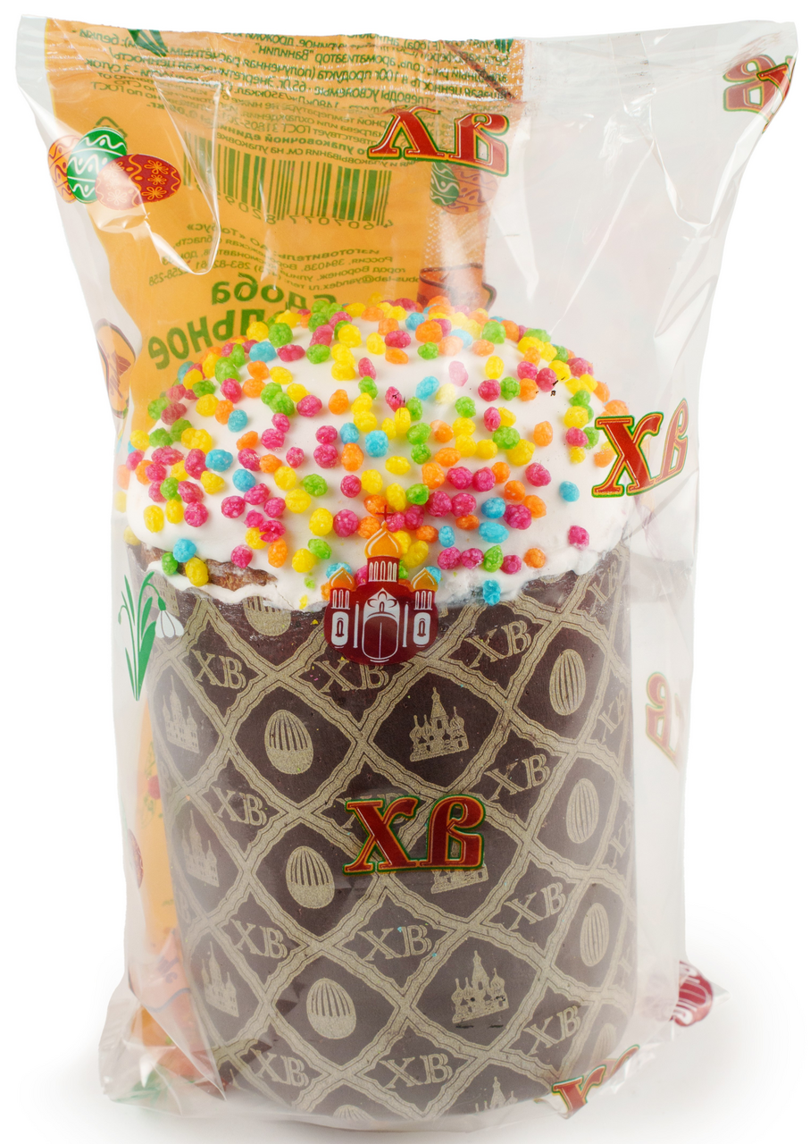 Сдоб�� Тобус Пасхальное угощение, 250г – кулич из муки высшего сорта с изюмом, глазурью и кондитерской посыпкой.