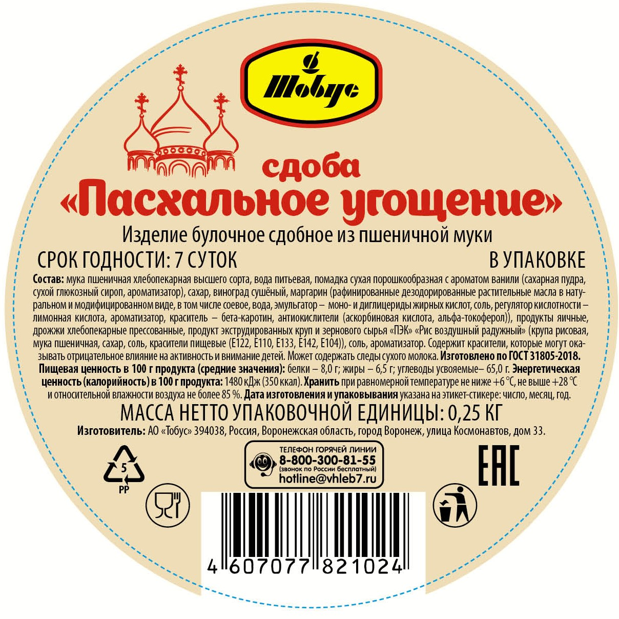 Сдоба Тобус Пасхальное угощение, 250г
