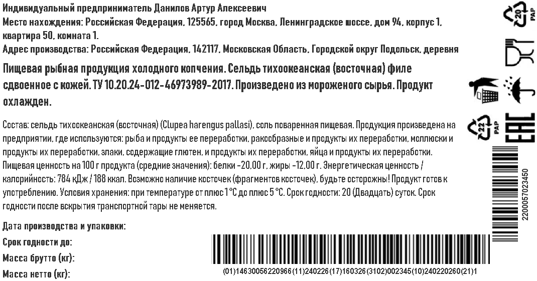 Сельдь филе холодного копчения