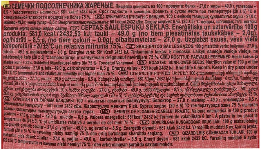 Бабкины семечки – отборные семена подсолнечника, обжаренные без добавления растительного масла и соли. Насыщенный сладковатый вкус и приятный аромат понравится взрослым и детям. Продукт подходит в качестве закуски к разным сортам пива, а также для трапезы на природе. Семечки придутся по вкусу людям, которые ведут активную умственную и физическую деятельность, станут источником энергии и бодрости на целый день. Продукт натуральный, содержит полный комплекс витаминов, жирных аминокислот и антиоксидантов, которые выводят токсины из организма и способствуют ускорению процессов пищеварения. Семена готовы к употреблению, не требуют дополнительной термической обработки. Бабкины семечки полезны для здоровья и не имеют ограничений в применении. Упакована продукция в герметичный пакет, который позволяет сохранить вкусовые качества продукта в течении долгого времени, а также есть эргономичная застежка, удобная для последующего хранения открытой пачки.